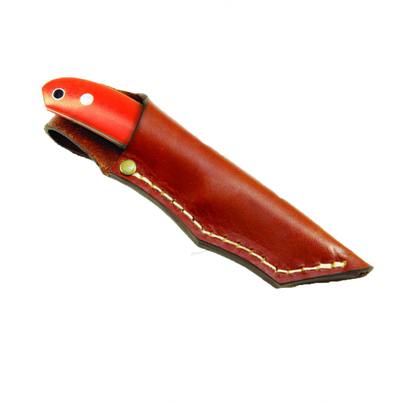 Comes with a sturdy leather sheath. The design in combination with the materials used makes this a very beautiful but highly resilient piece of kit. Ideal as a small skinner for small deer and as a small belt knife for safari hunters.