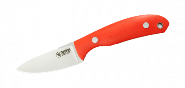 The handle tapered tang and shape of the handle makes the knife very nicely balanced and comfortable. The bright orange G10 glass fibre laminate handle is tough, waterproof and maintenance free.