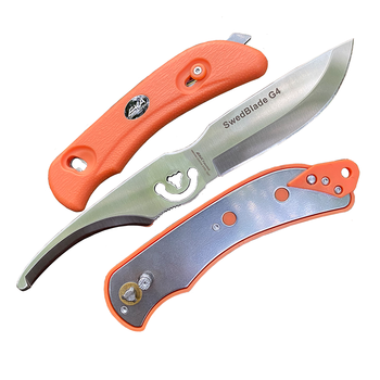 The knife that does everything has now become even better. EKA have developed a hunting knife that can handle all activities on your outdoors hunting trip, from sitting and carving, splitting sticks for the fire, to removing and skinning game in all sizes. Disassembly for cleaning is now easy, with a recessed button at the bottom of the handle that is pushed in and down. The scales and the blade then come apart so you can ensure that your knife maintains good hygiene. STEEL IN BLADES: Sandvik 12c27 BLADE LENGTH: 100/80 mm TOTAL LENGTH: 215 mm BLADE THICKNESS: 2.9 mm HANDLE: PROFLEX Grip TOTAL WEIGHT: 135 grams